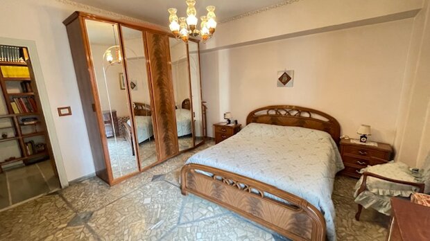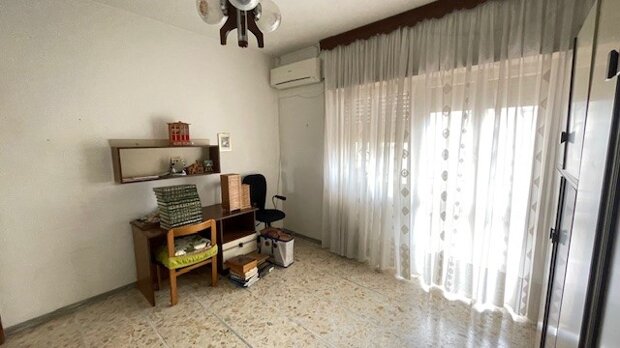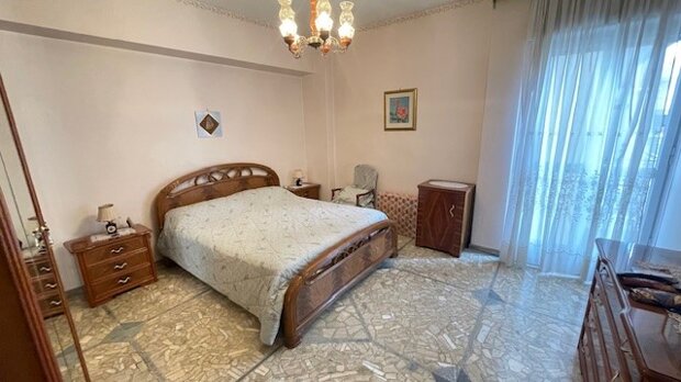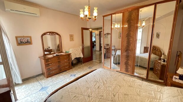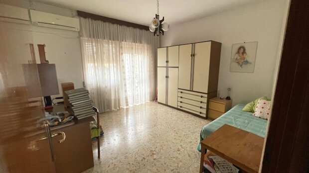 ingresso, ampio salone, cucina abitabile, due ampie camere da letto , un bagno finestrato con vasca, ripostiglio, due armadi a muro e due balconi.